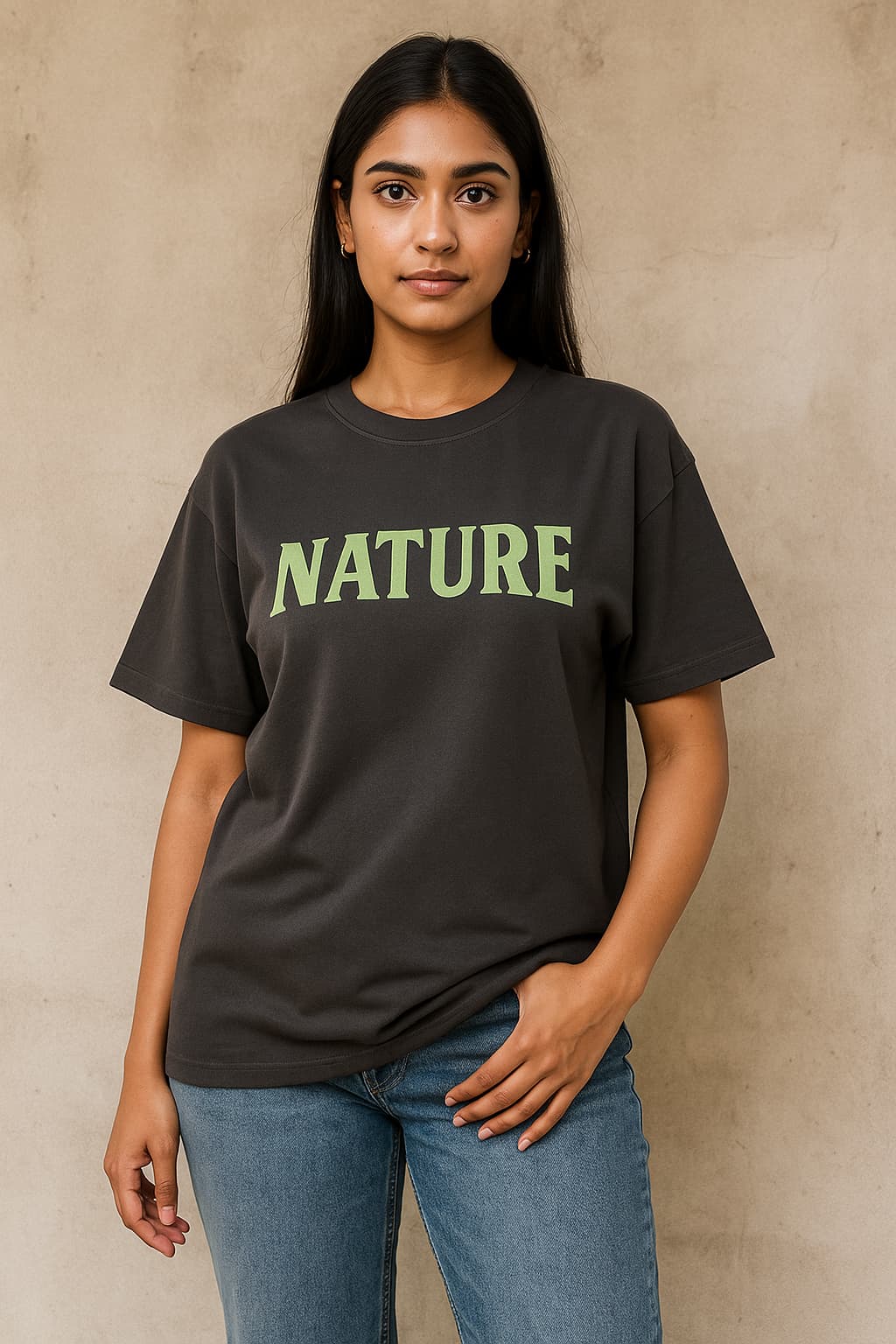 Where conscious living meets creative style. The SoulSet Nature Tee is a tribute to mindful living and our planet. Featuring soft typography on the front and a symbolic turtle graphic on the back, this oversized tee captures the spirit of slowing down, living intentionally, and respecting nature.